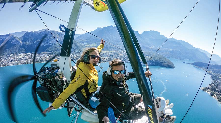 Ce qui vous attend ? Assis(e) derrière votre pilote expérimenté, vous volez paisiblement au-dessus des Alpes et du lac d’Annecy : panoramas à couper le souffle garantis.